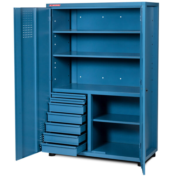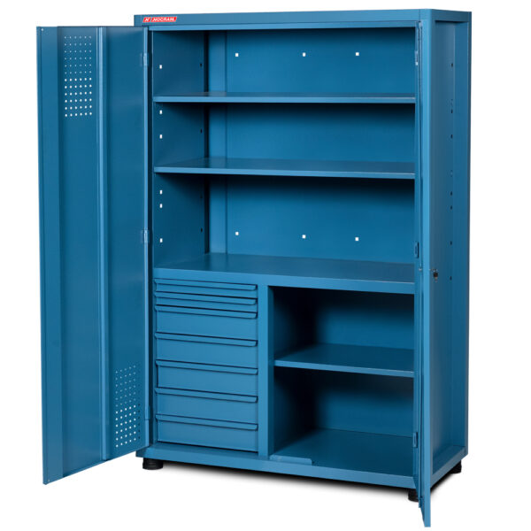 O NA-11 possui 3 prateleiras, 7 gavetas amplas e portas de aço.