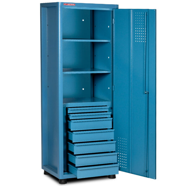 O NA-5 possui 2 prateleiras, 7 gavetas amplas e porta de aço.